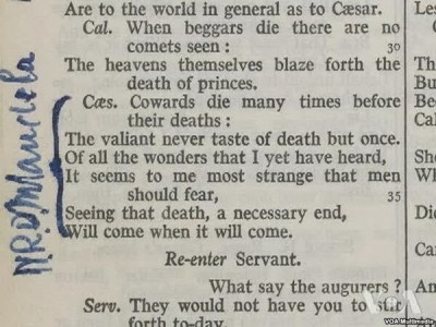 On the day the world remembers Nelson Mandela, it seems appropriate to publish this translation into Tibetan of some lines from Shakespeare’s Julius Caesar (act II, scene II) – the very lines that Mandela highlighted in the so-called ‘Robben Island Shakespeare’ on the 16th December 1979 during his long period of captivity.